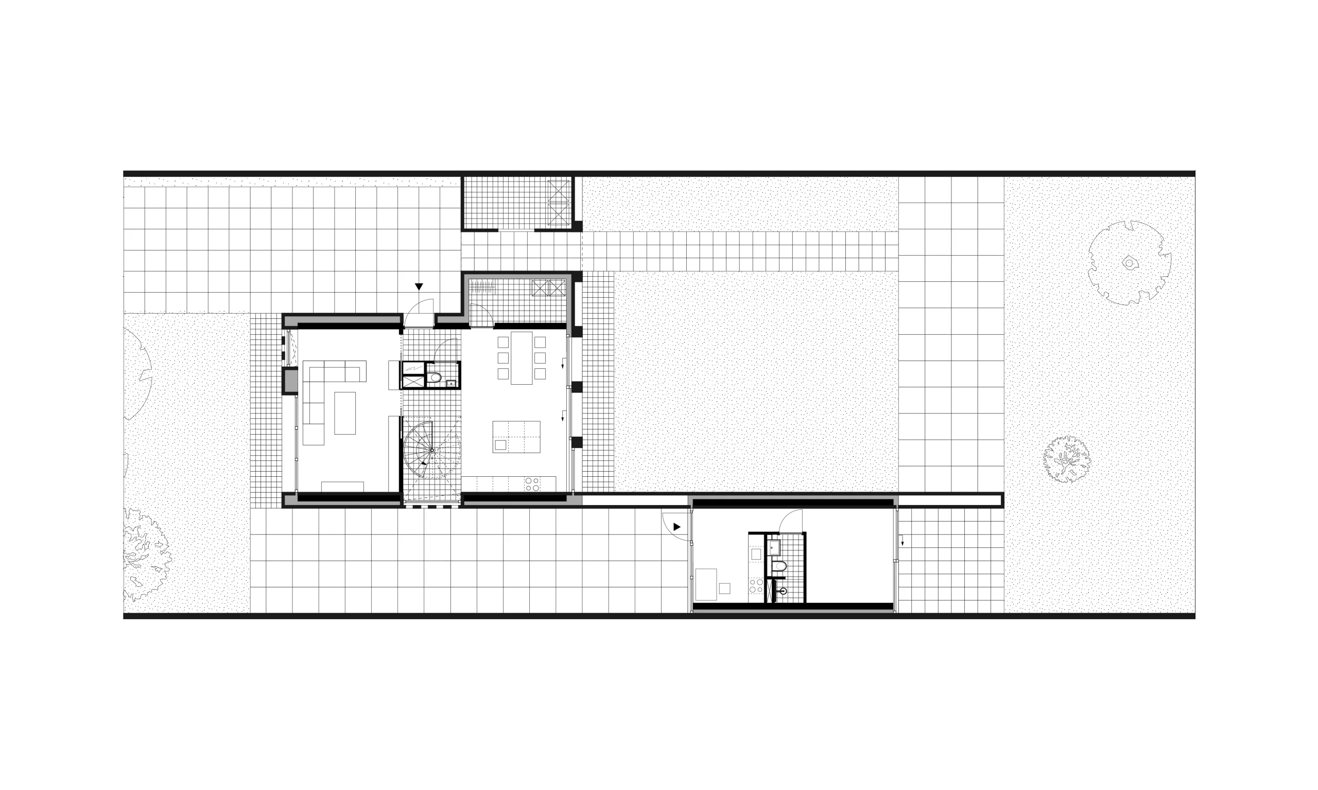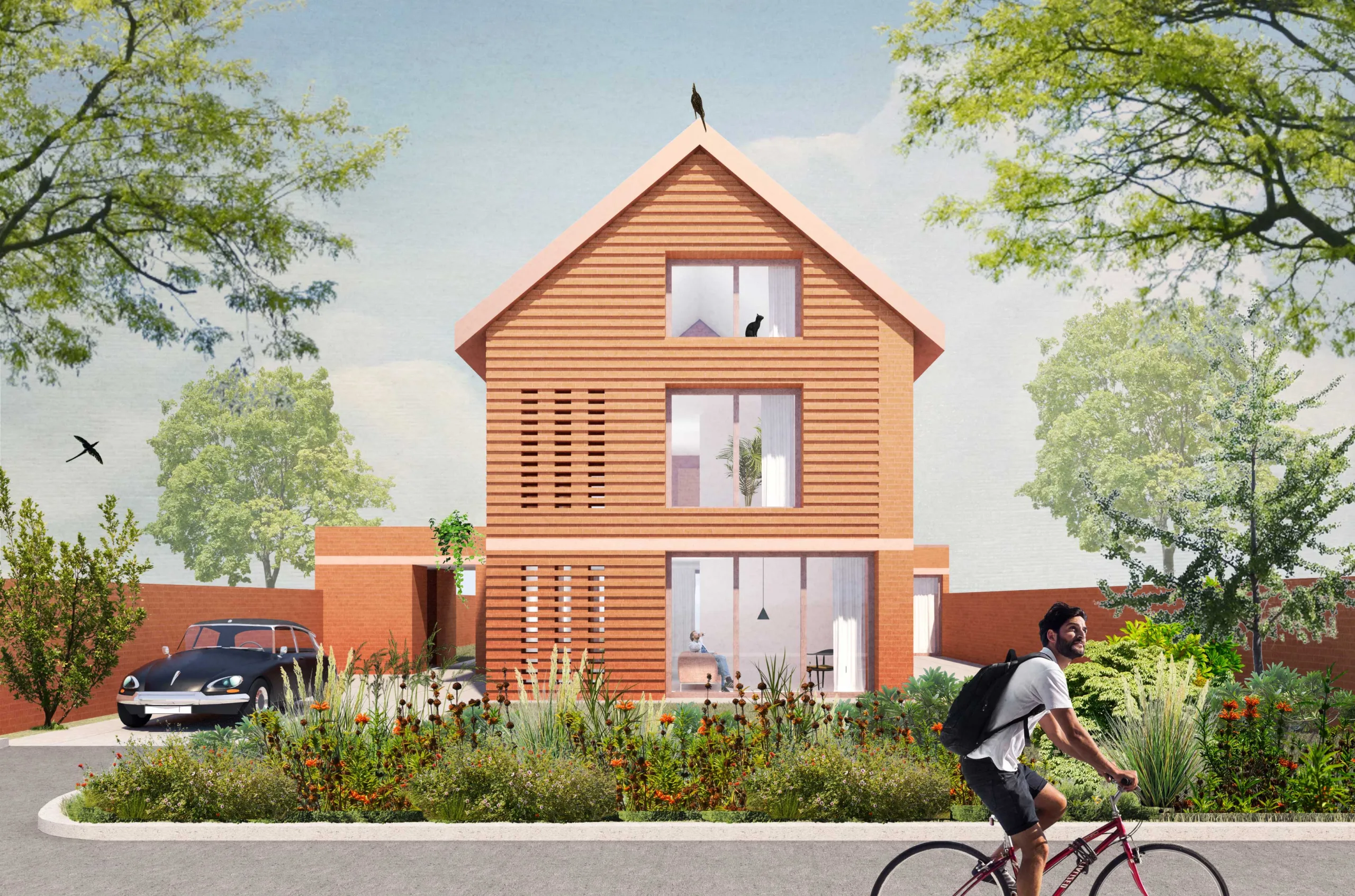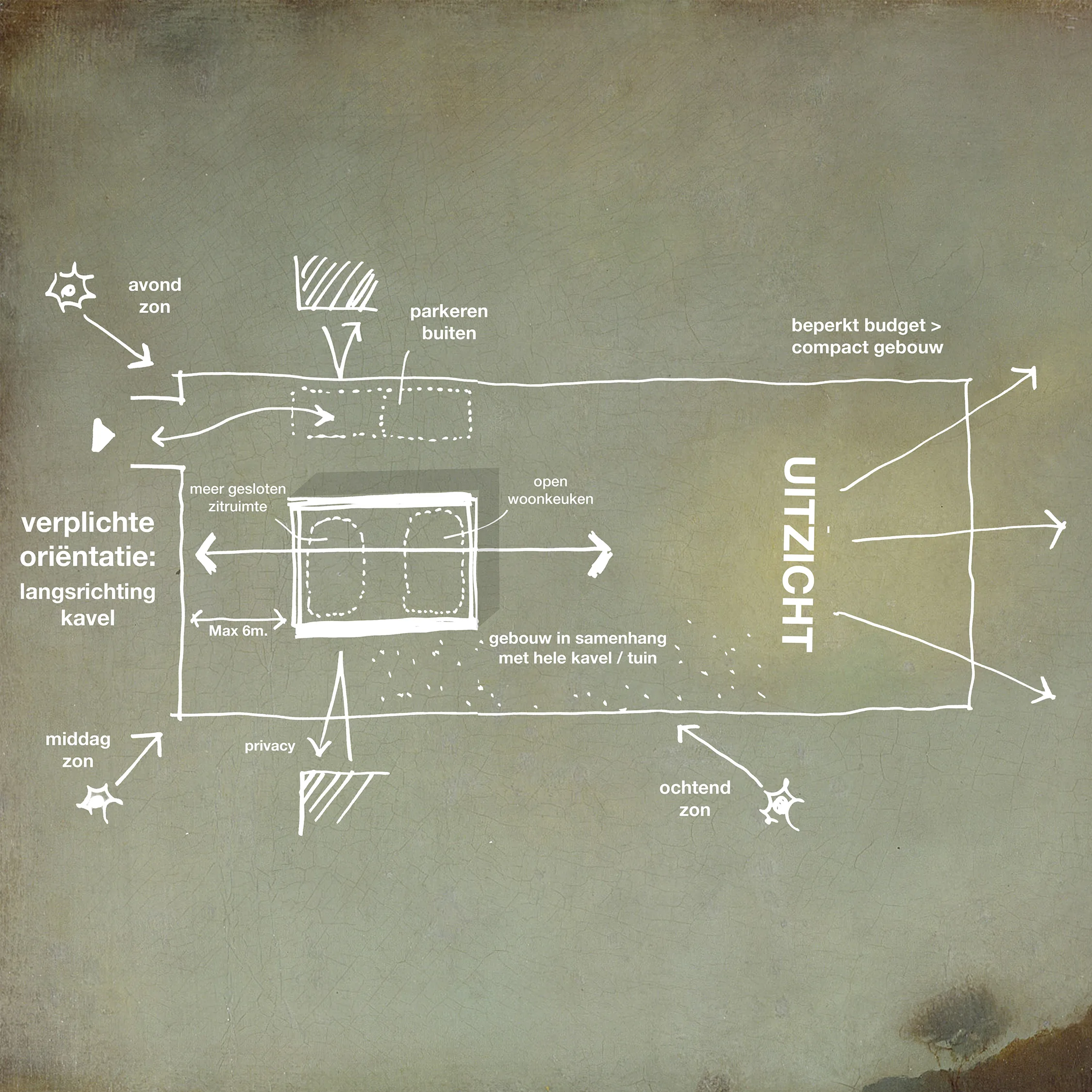 Design for a remarkable family house in Heerenveen, Friesland. The housing program is organized around a central wall that is positioned in the longitudinal direction of the plot. Two volumes on either side of the wall; a house and a studio. The wall acts both as a divider and a connecting element. Between the wall, the volumes and the fencing of the courtyard, we divided the plot into various places. Each place has its own orientation, relationship with the environment and shelter.