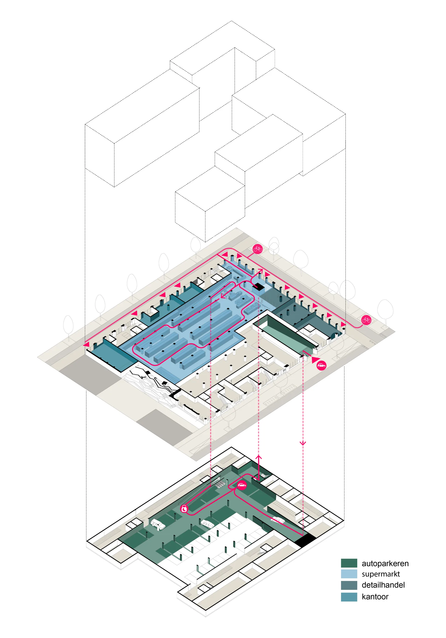 Hibi is part of the central shopping area for the surrounding neighborhoods, with a thoughtful plinth program that contributes to the liveliness of the streets. A variety of functions can be found in each street. At street level there are small-scale offices, townhouses, a bicycle workshop, the entrance to a large supermarket, retail stores and inviting residential entrances to higher-end properties. Residents and visitors will have 24/7 access to the underground parking garage. For the retail program, Hibi is introducing a retail mix of well-known crowd pullers and local entrepreneurs, giving the Merenburg Street its own and unique urban atmosphere.