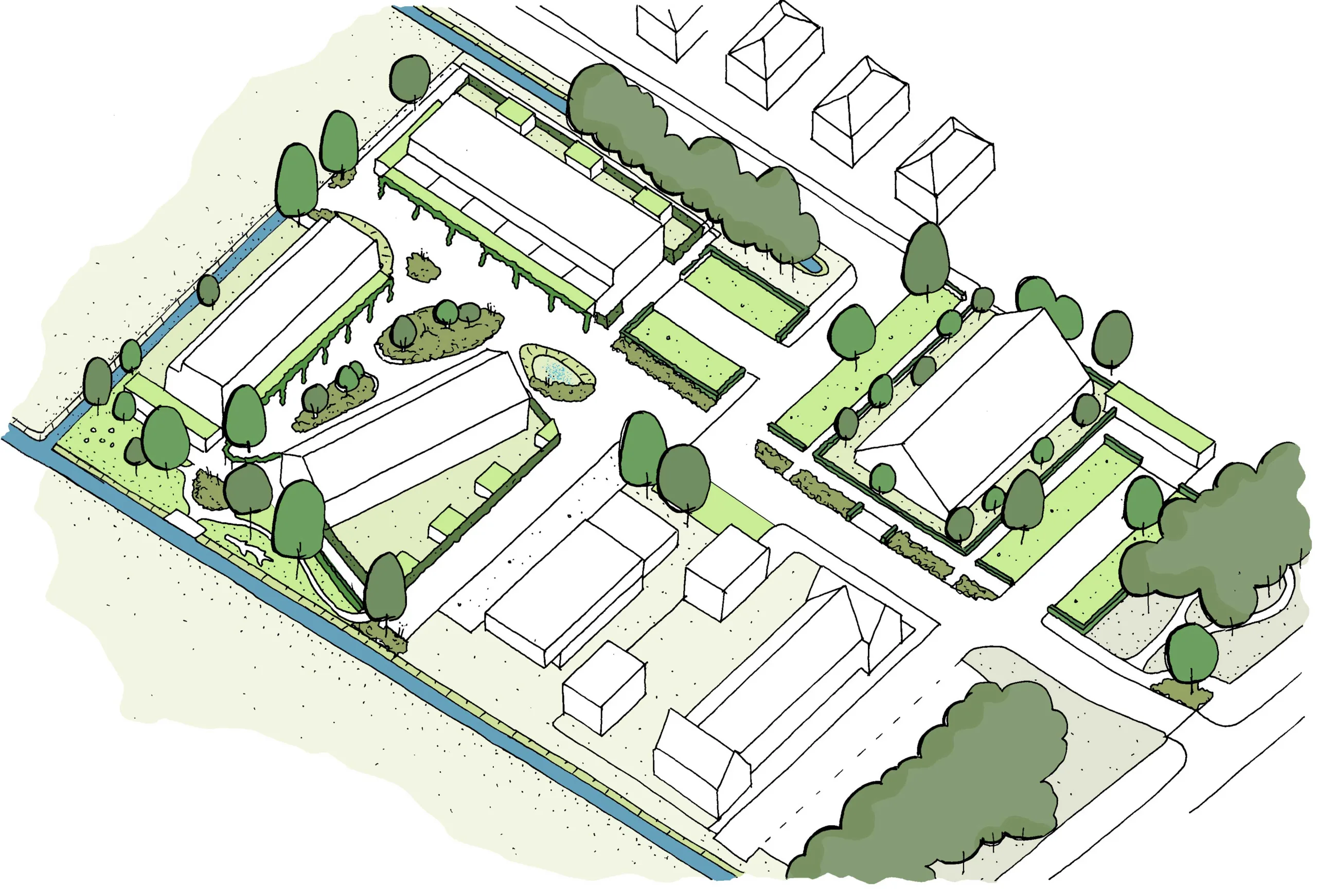 ‘Het Wouwse Hof’ is our design for a sustainable development with over 30 affordable homes on the edge of Rijnsaterwoude; a small village on the Braassemer lake. With a variety of affordable housing types, it accommodates different target groups, from young to old, stimulating a natural ‘flow’ of residents in the village. Where the urban design encourages playing outside, a sense of community and meeting each other, the architecture follows the rural housing types of the area. With the addition of a pergola as a transition zone, the buildings are visually connected and the entrance feels like a generous connection between private and public areas.