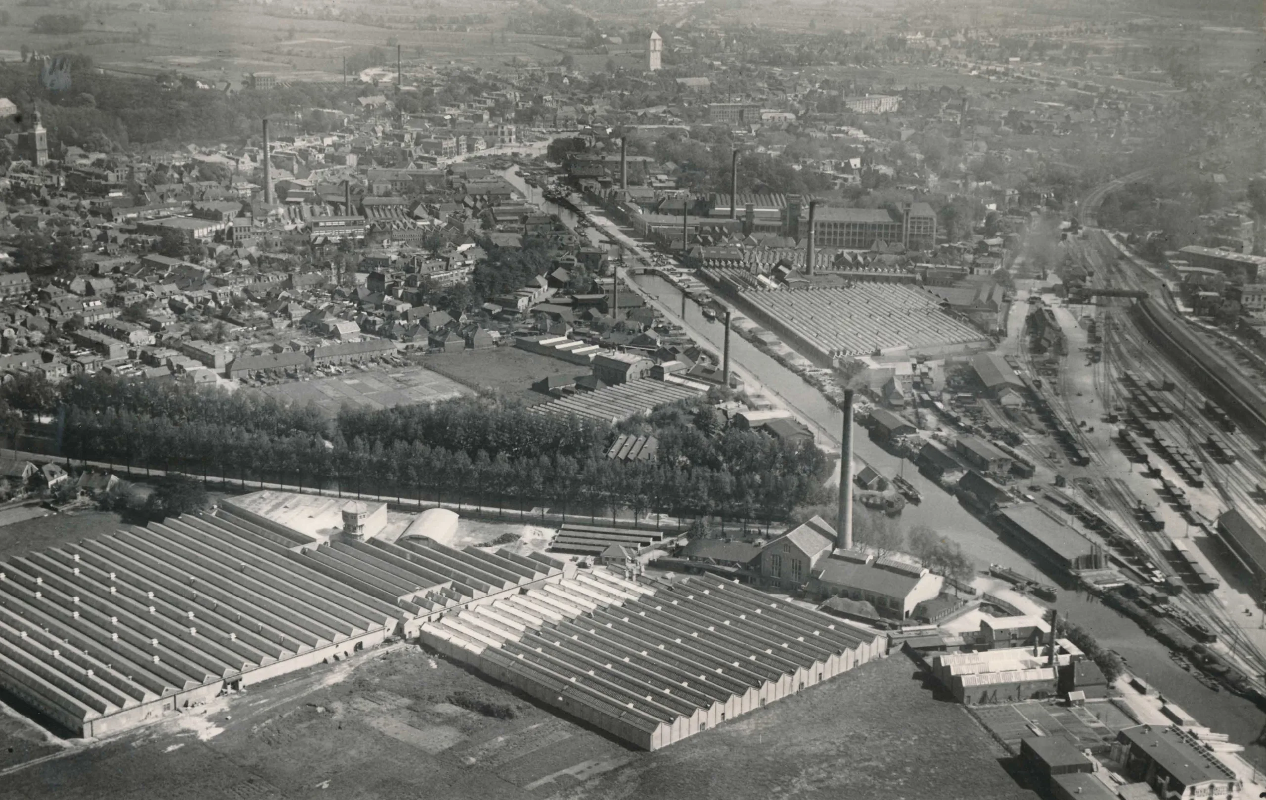 Foto 1928; station Almelo wordt aangelegd in een periode van heftige industriële ontwikkeling